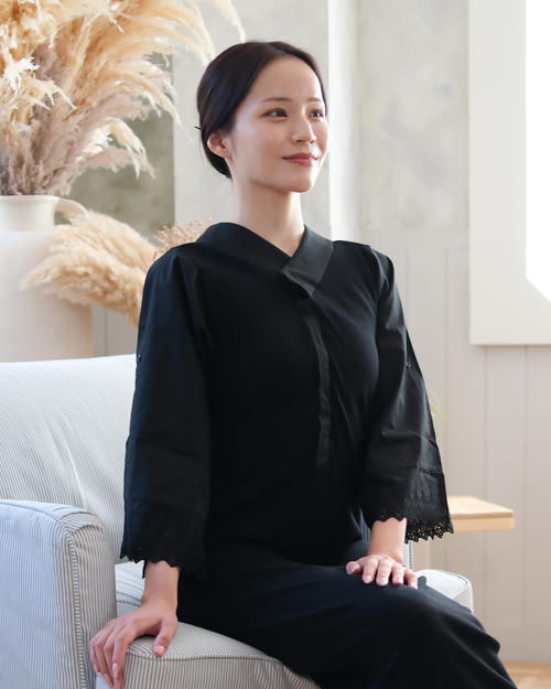 つけ替え袖 / 黒ネコと牡丹(ブラック) -